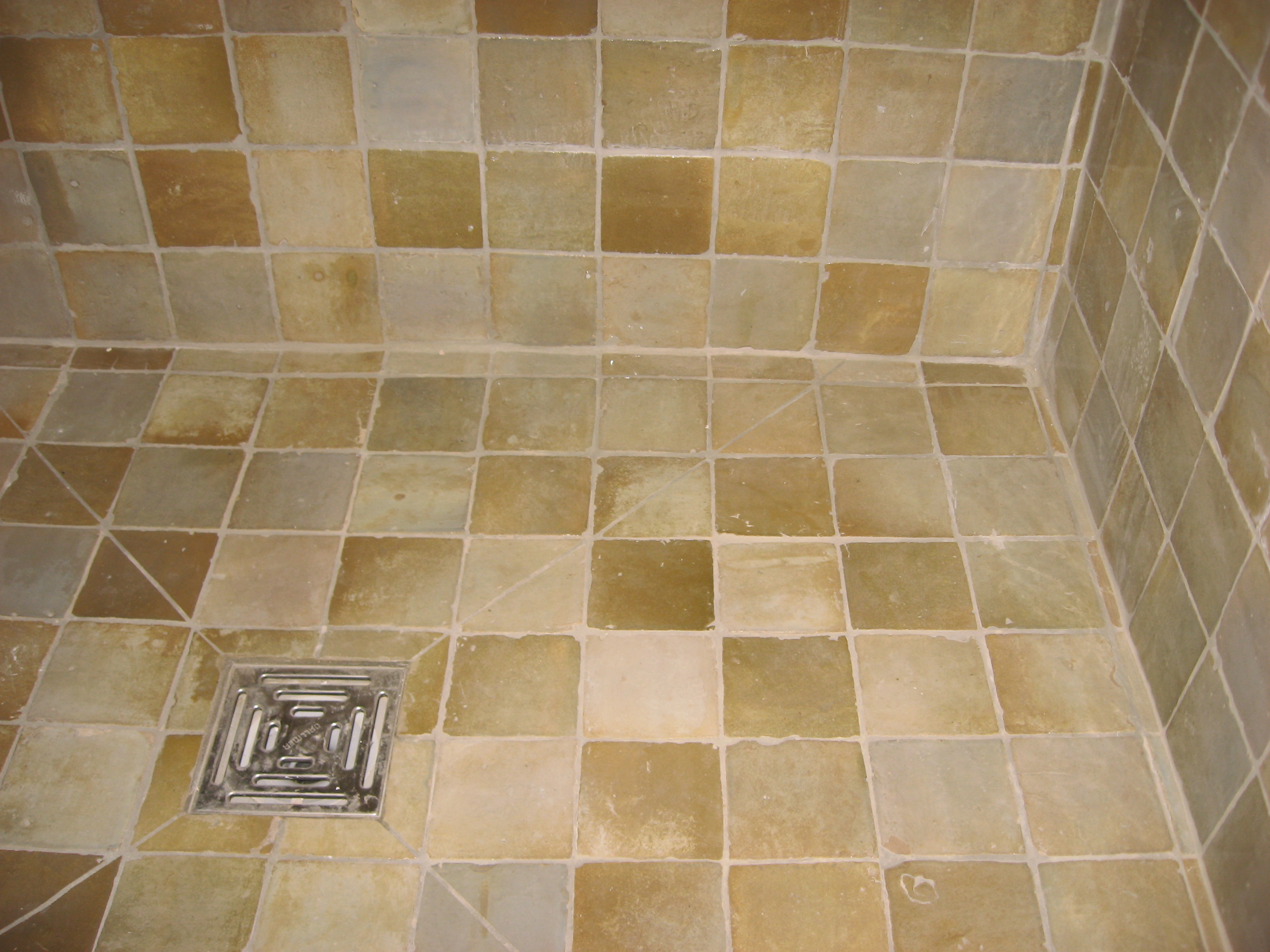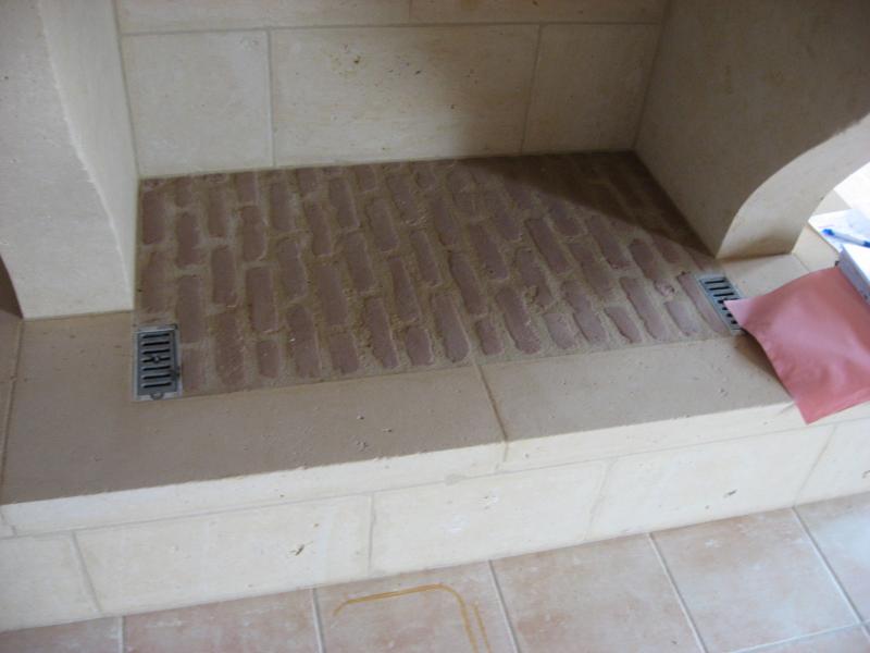 Pose traditionnelle de tomettes sur un mortier de scellement à la chaux.