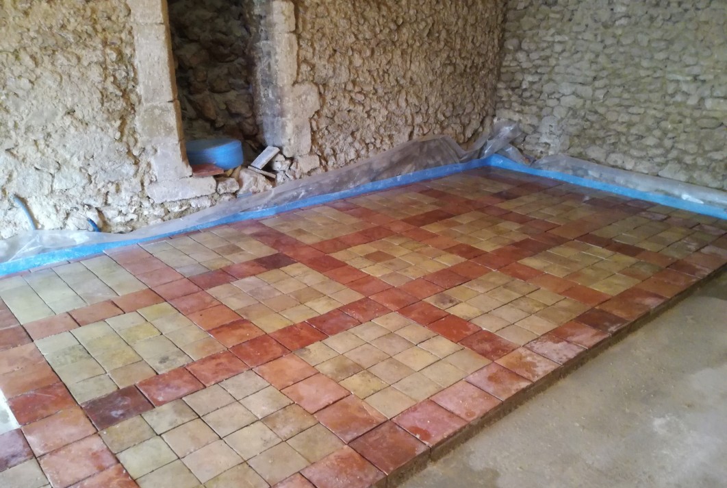 Restauration sol en tomettes.